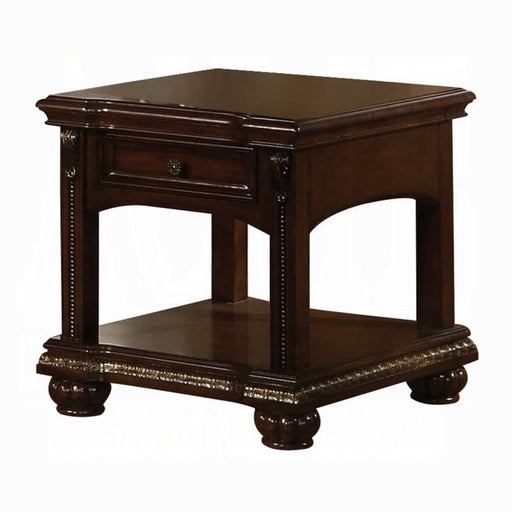 The Anondale End table is finished in brown cherry. Featuring Storage Drawers combined with modern style found in clear glass insert top and casua...