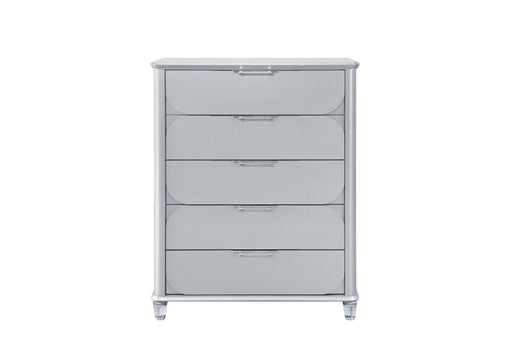 Transform your space with the Apollo Bedroom Collection by Global Furniture USA. This sleek ensemble, finished in light grey, features textured dra...